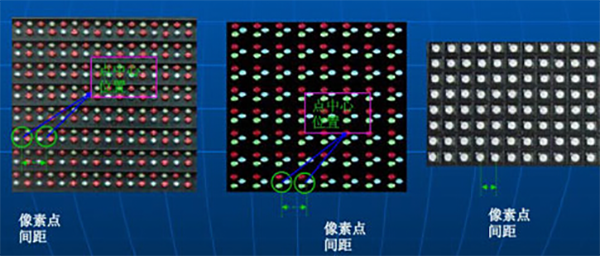 相邻两个像素点之间的中心距离,间距越小,可视距离越短。业内人士通常简称P来表示点间距。