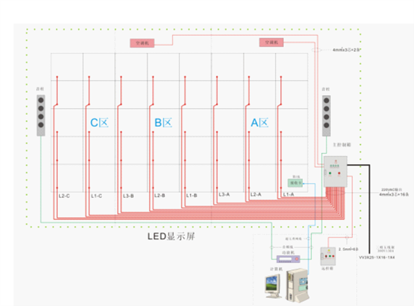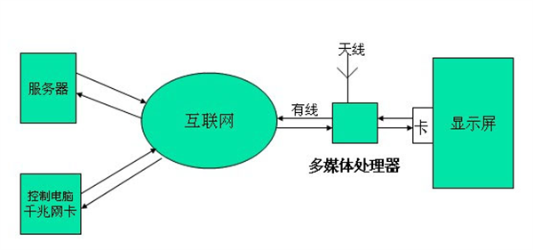当显示屏和控制电脑的布线距离小于100米时,用网线传输;当两者间的距离小于500米大于100米时,用多模光纤,当距离大于500米以上时,用单模光纤。